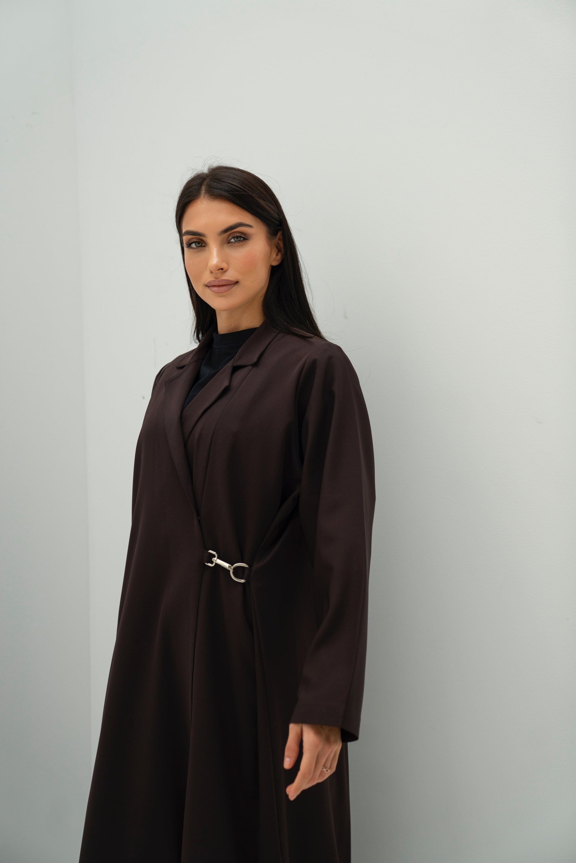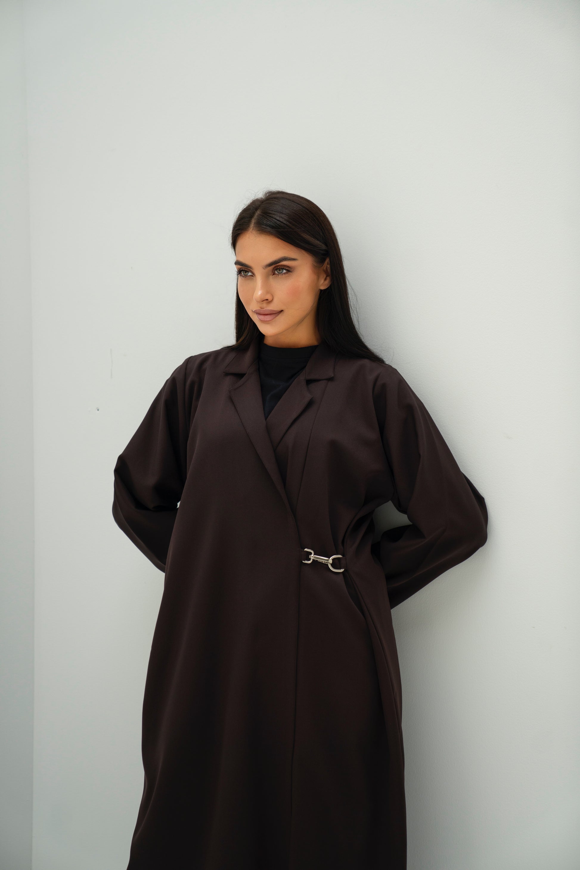 This elegant piece features a sophisticated notched lapel and a close-fit fastening hook at the side, exuding timeless style and modern allure.