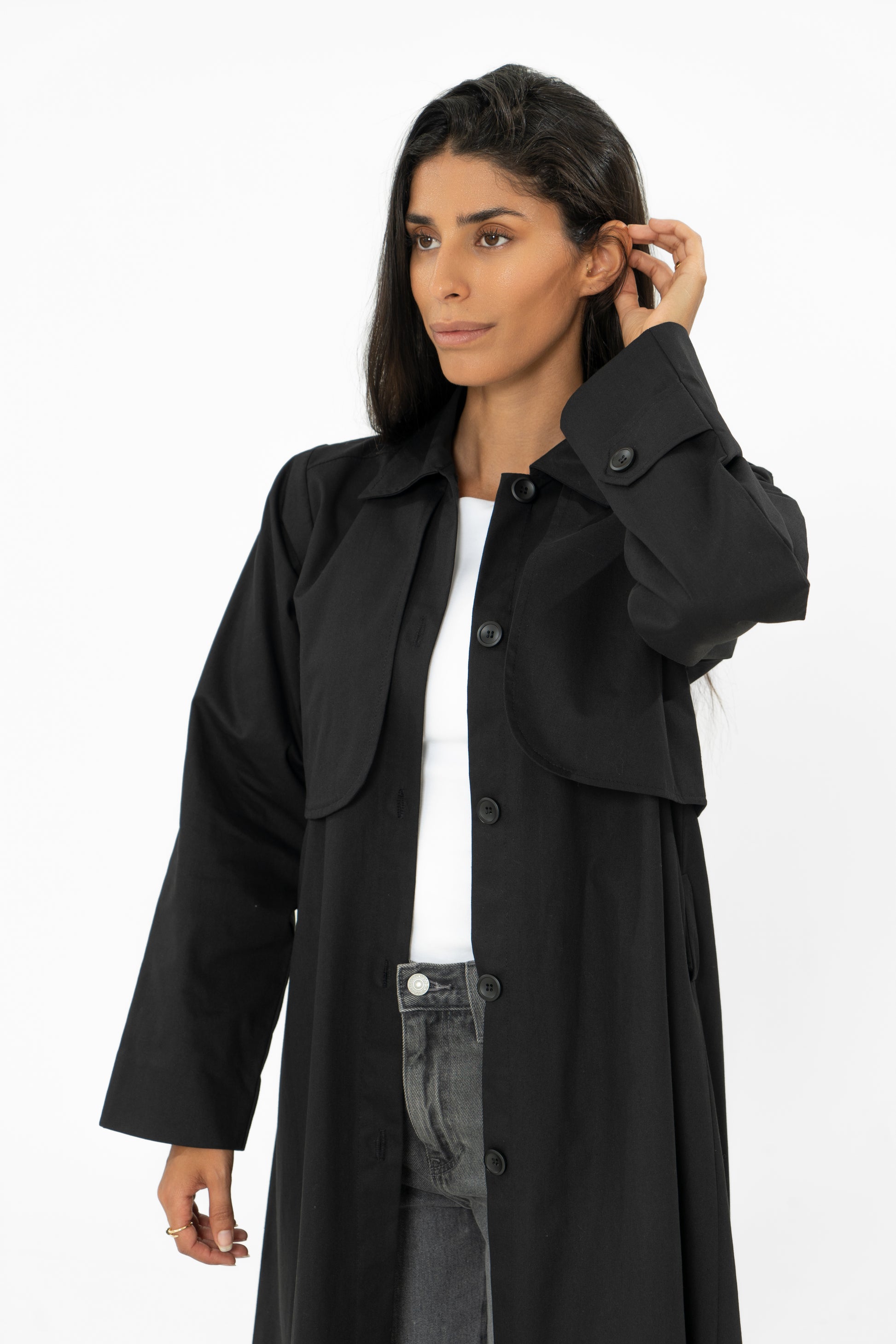 Crafted from luxurious, high-quality poplin, the Official Outerwear is a true statement piece. Featuring sleek black buttons, a sophisticated sleeve overlap design, and dual back vents, this outerwear offers both style and freedom of movement. The classic storm flap adds the perfect finishing touch, bringing together elegance and functionality in one versatile garment.