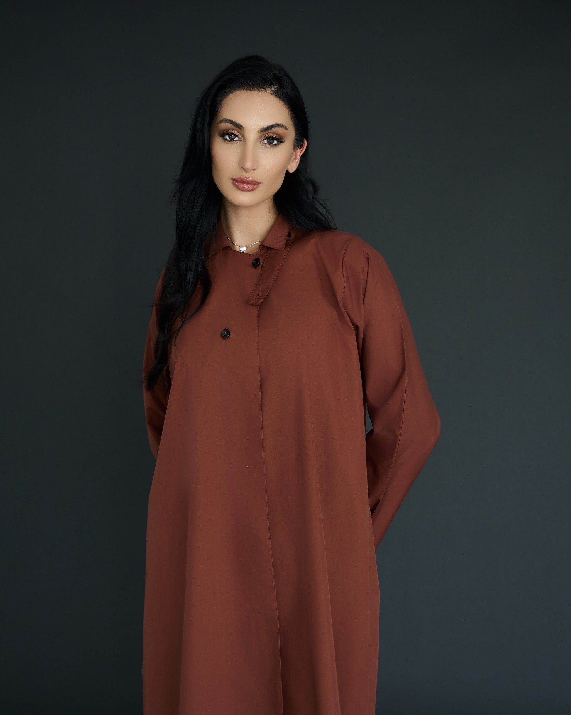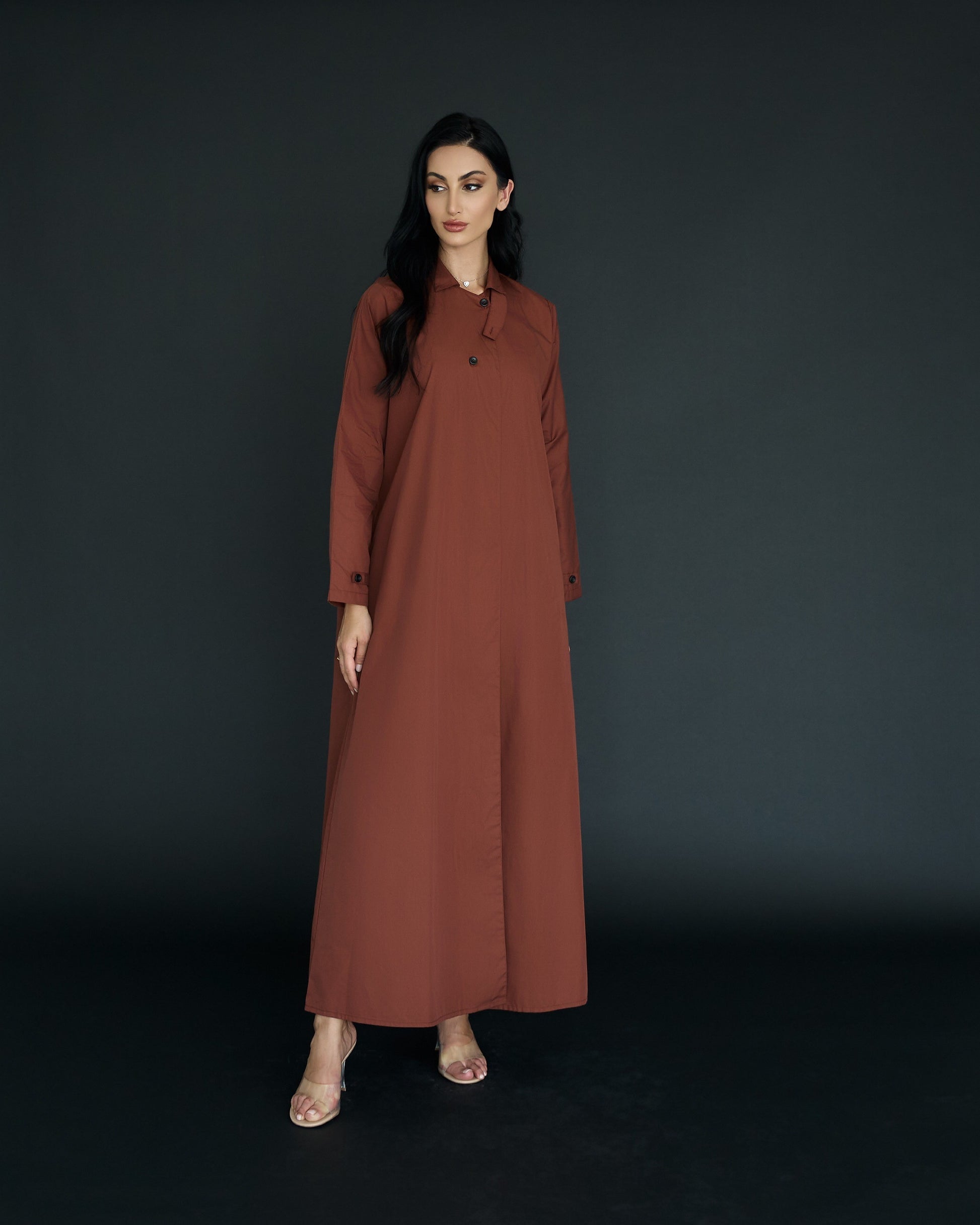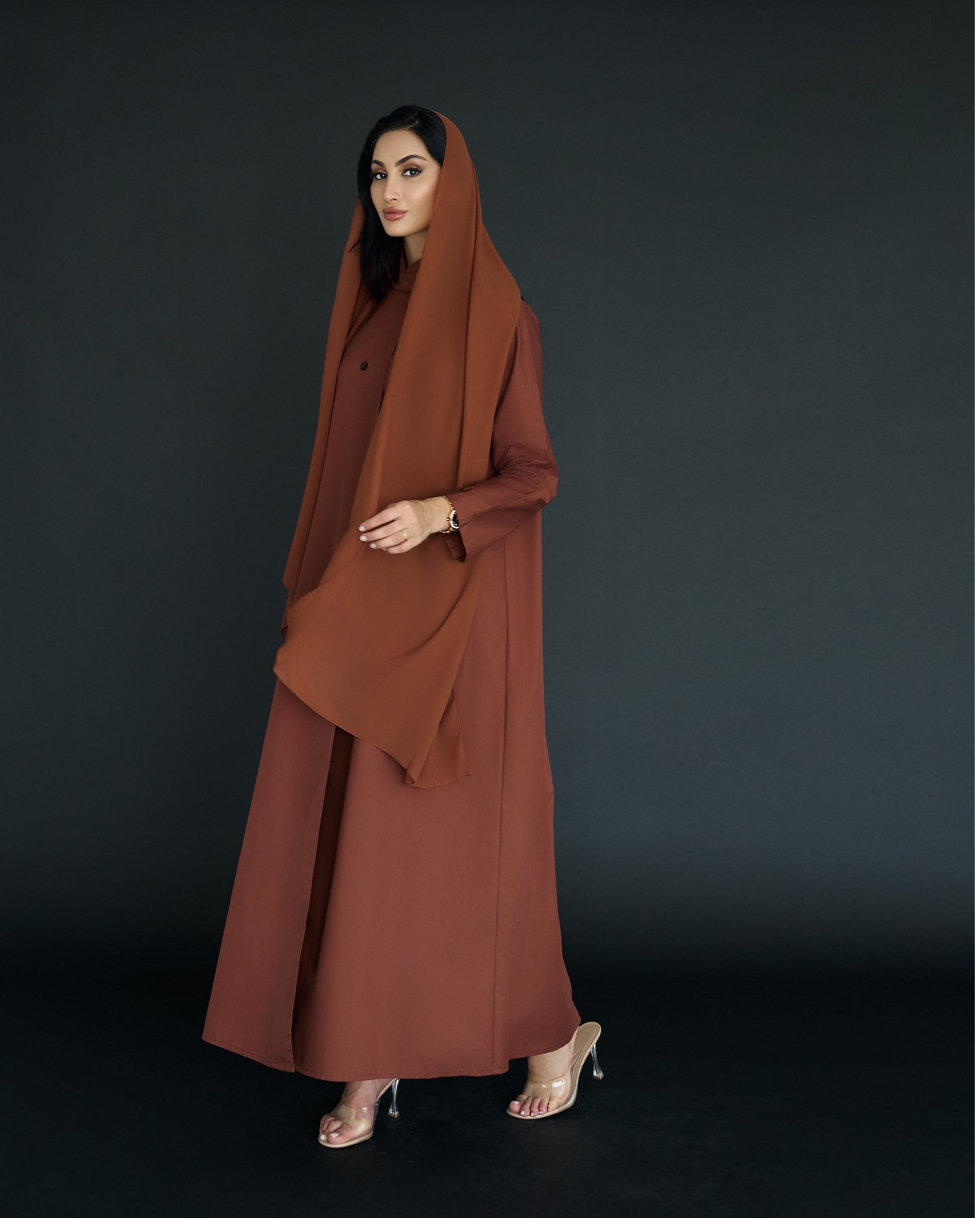 Elevating traditional modest fashion, the Reform Abaya stands out with its unique built-in choker, adding an edgy and contemporary allure to the classic silhouette. Seamlessly integrated into the design, this innovative detail grants you the freedom to make a bold statement without the necessity for additional accessories.