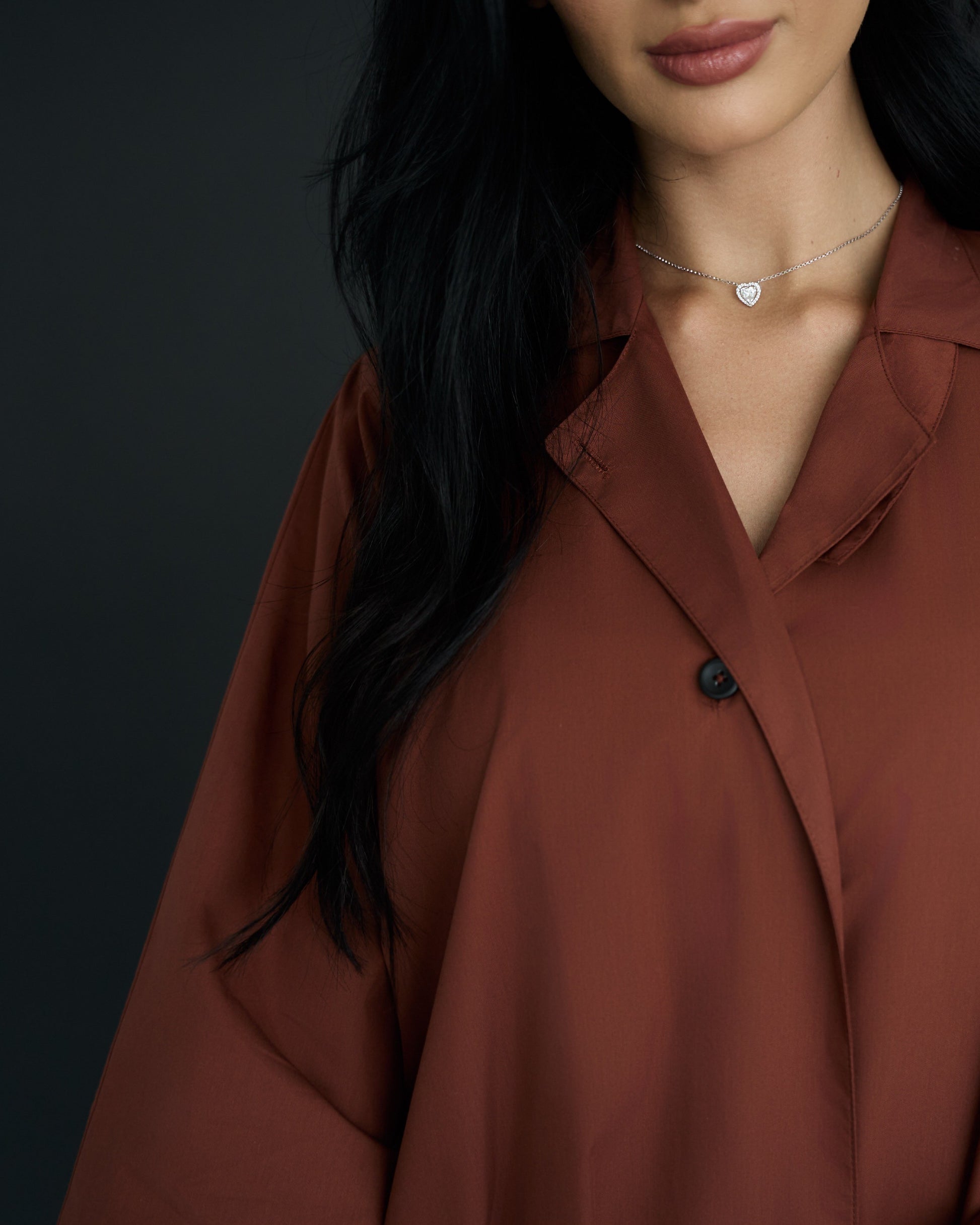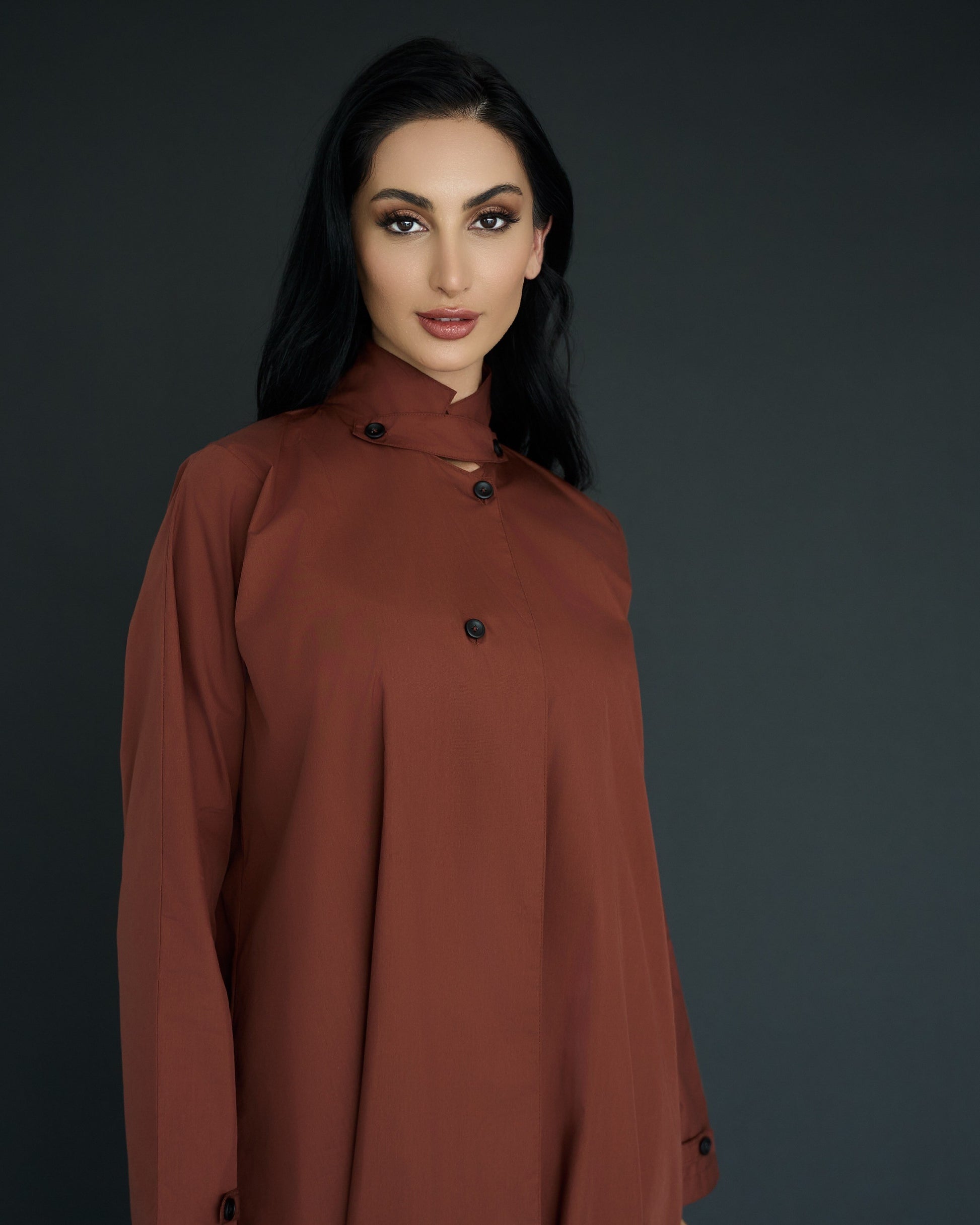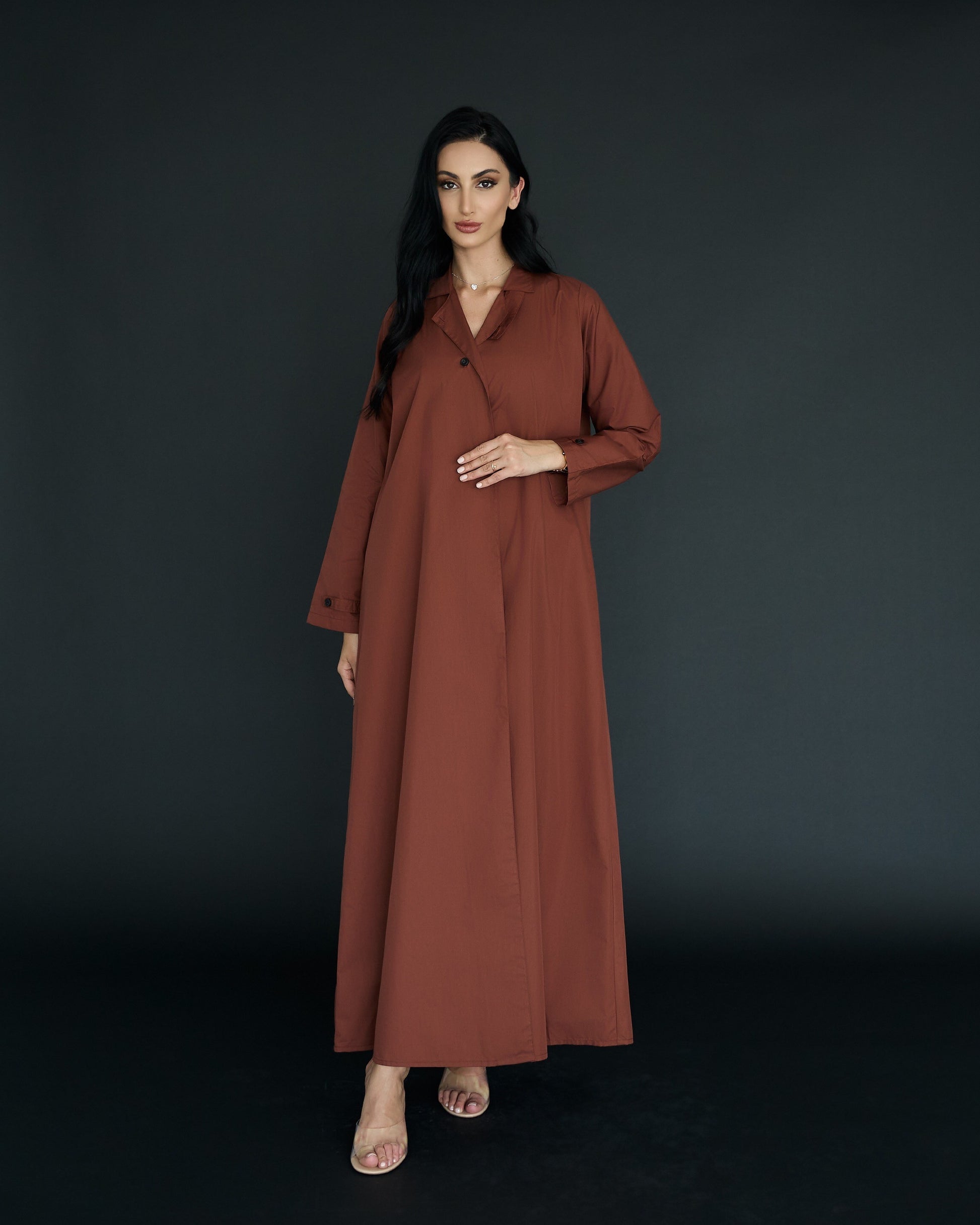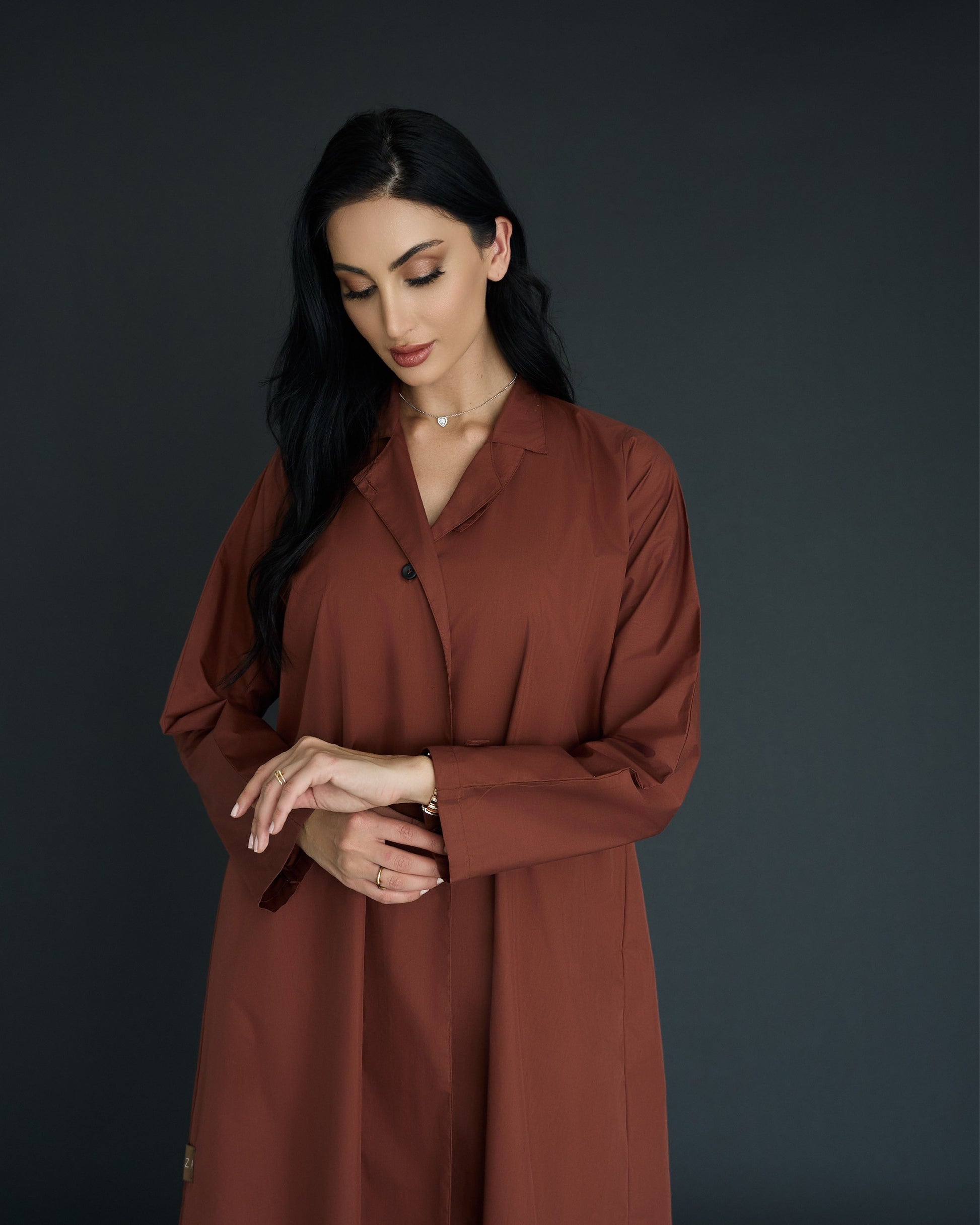 Elevating traditional modest fashion, the Reform Abaya stands out with its unique built-in choker, adding an edgy and contemporary allure to the classic silhouette. Seamlessly integrated into the design, this innovative detail grants you the freedom to make a bold statement without the necessity for additional accessories.