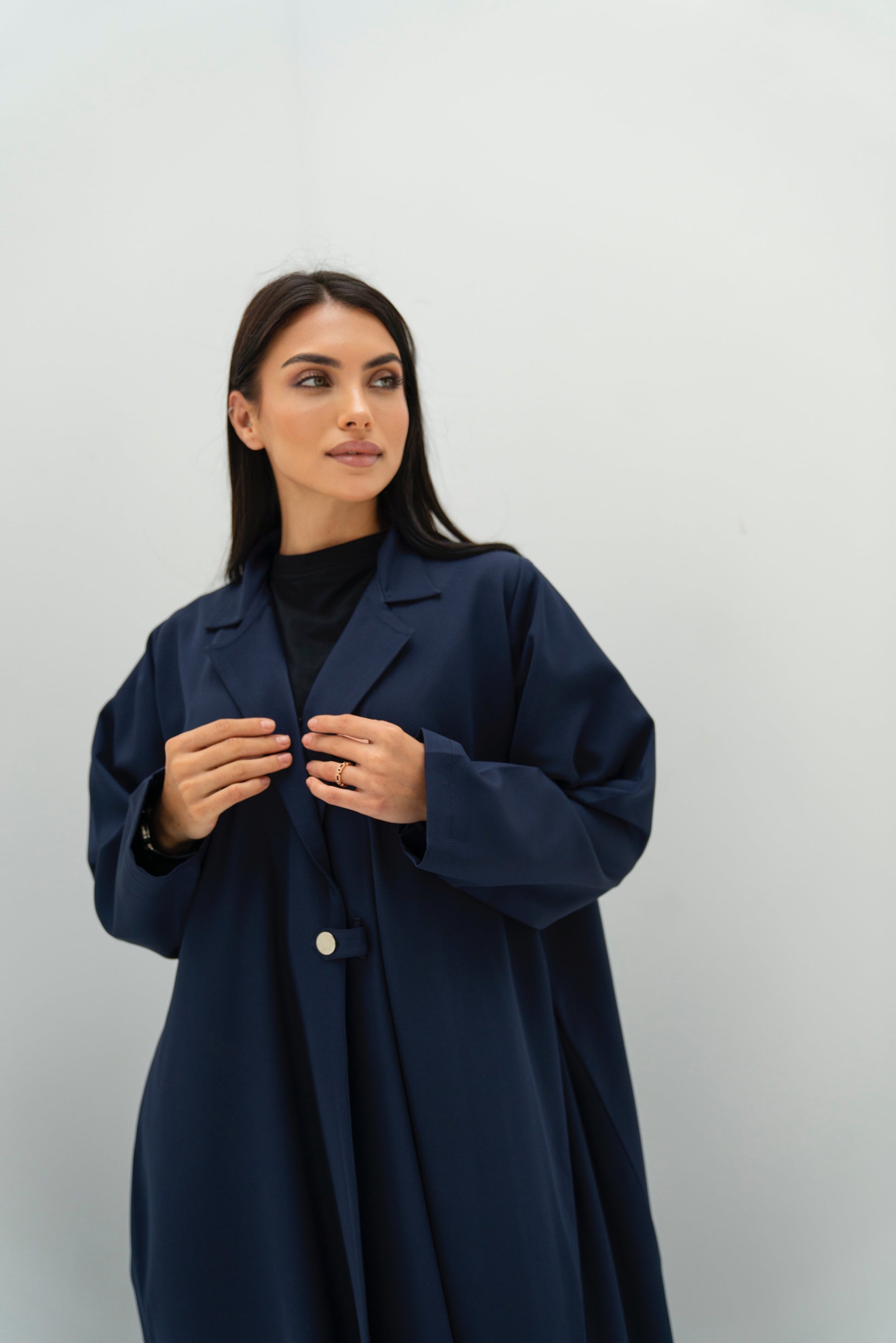 This stylish piece showcases a chic overlap closure with a stunning silver button and stylish inverted pleats at the waist, adding a touch of flair to your look.