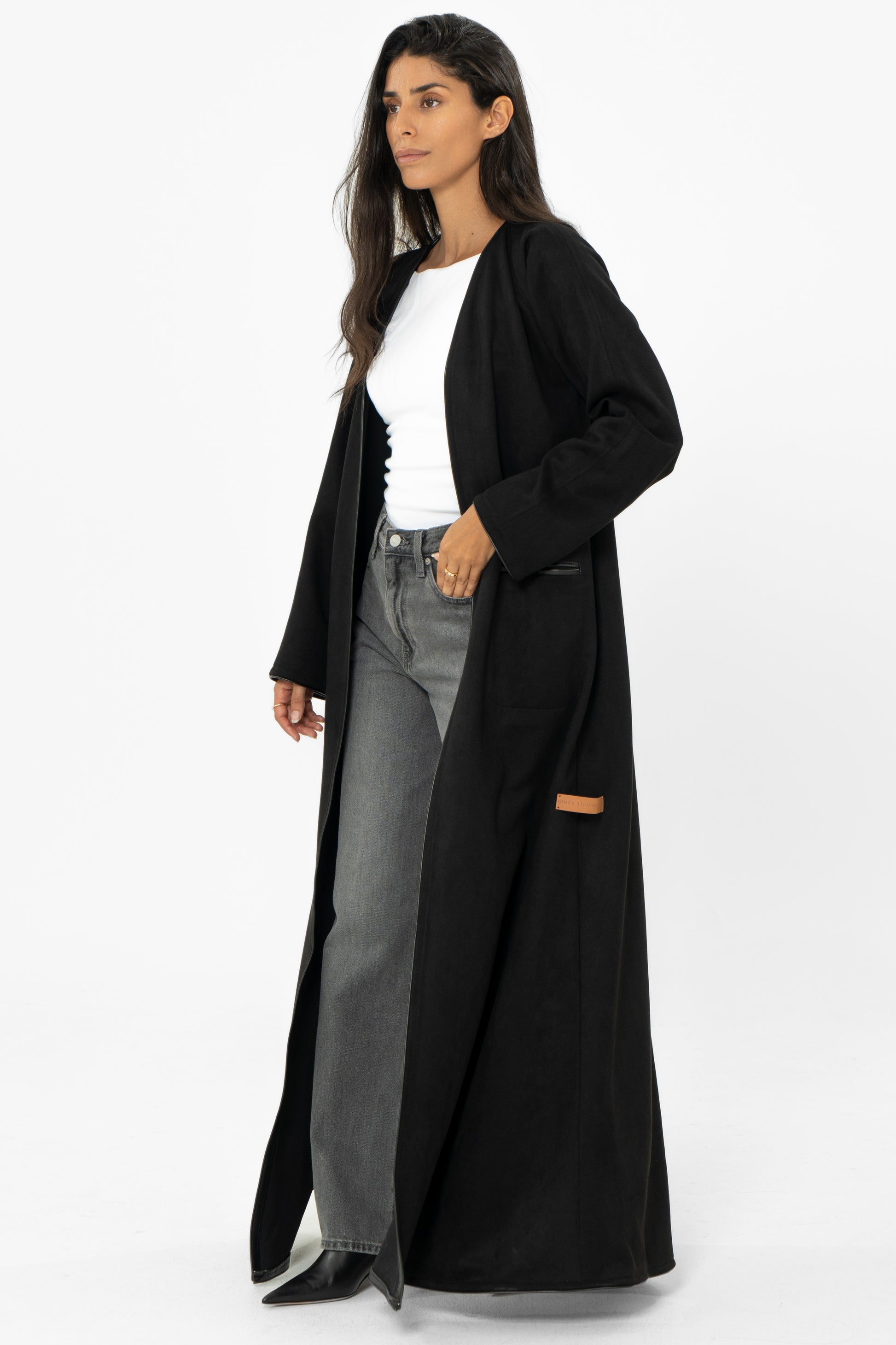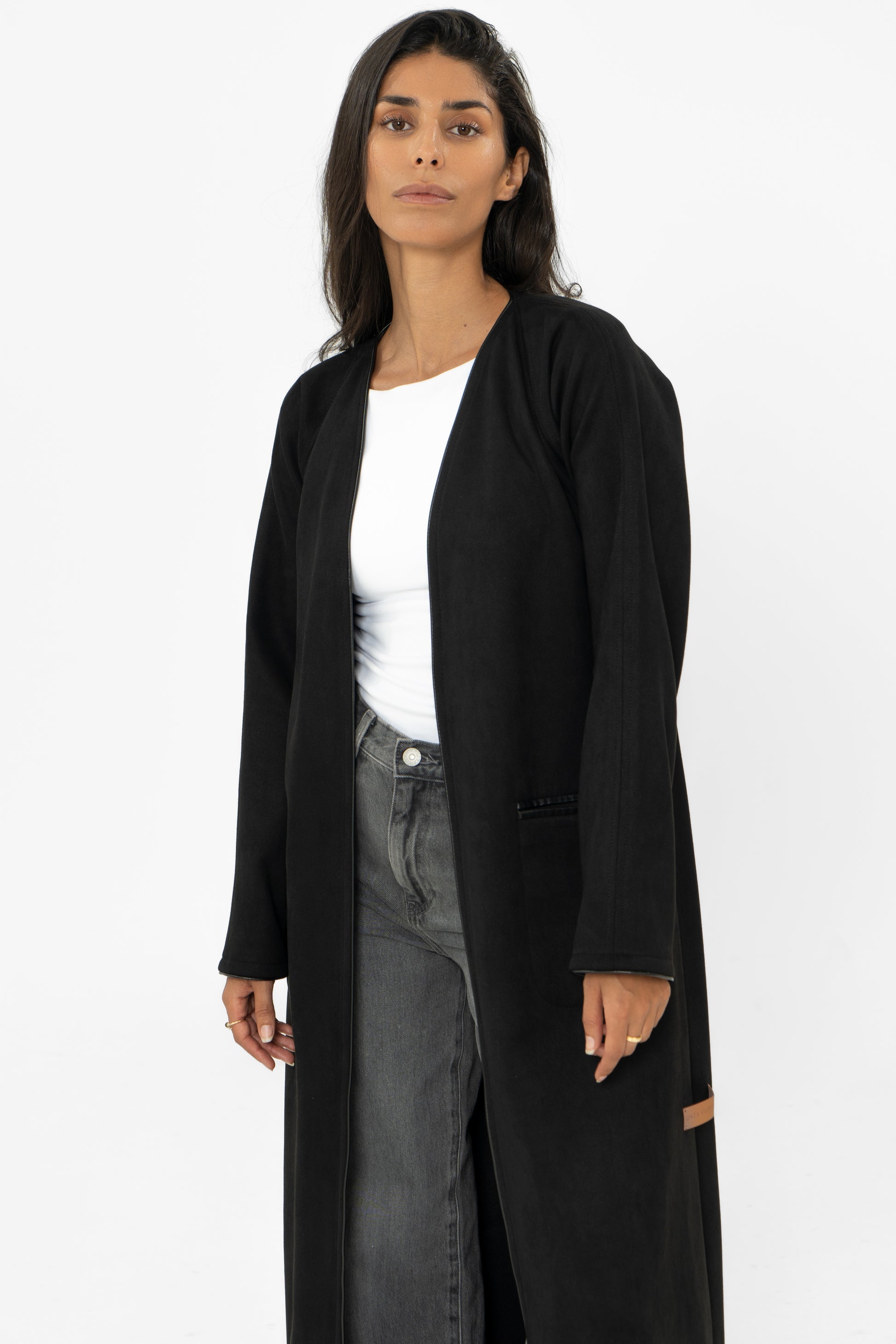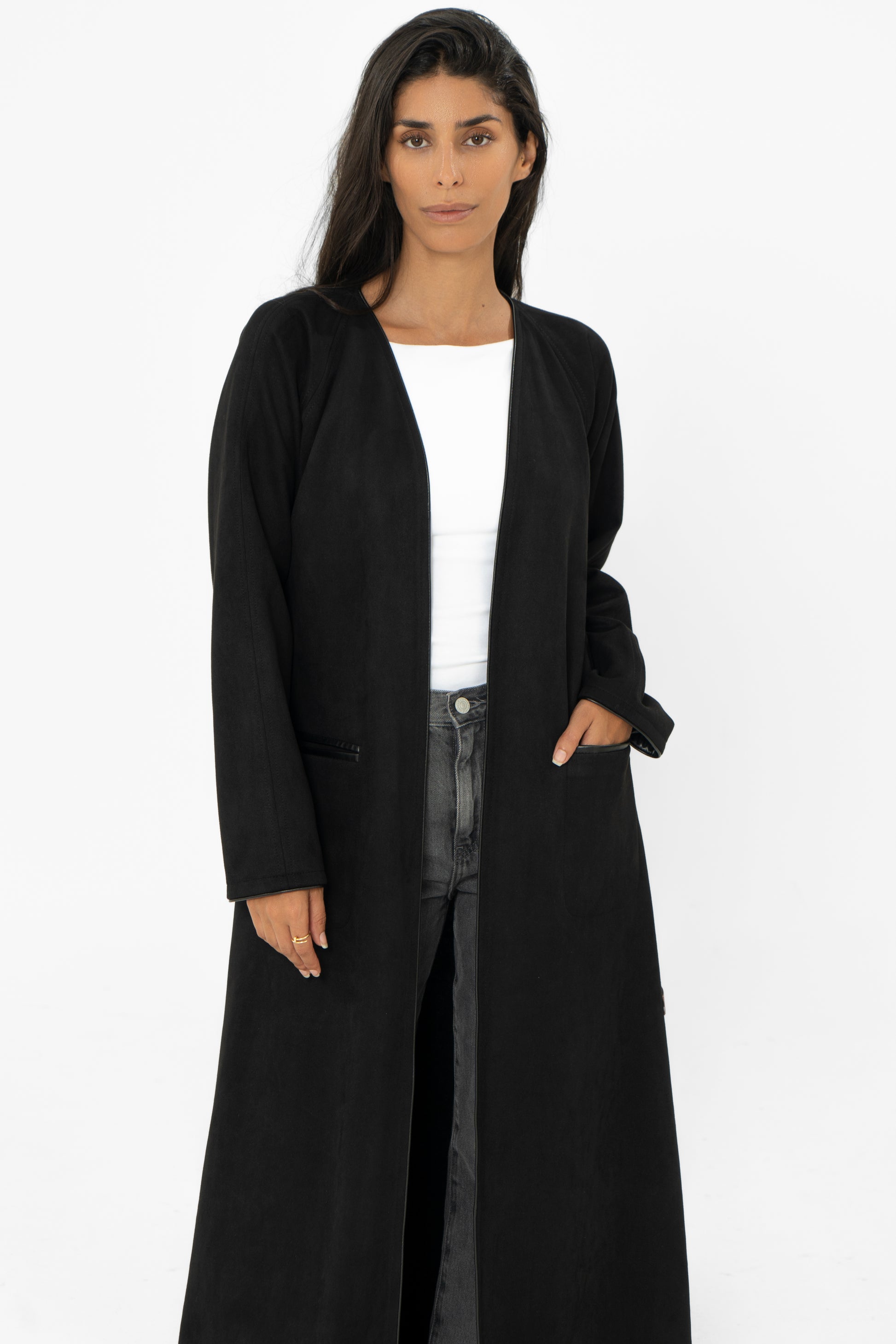 Crafted from soft, buttery suede that offers a smooth, luxurious drape. Featuring elegant leather lining and practical patch pockets, this piece seamlessly combines sophistication with functionality. Ideal for those seeking a timeless, versatile addition to their wardrobe.