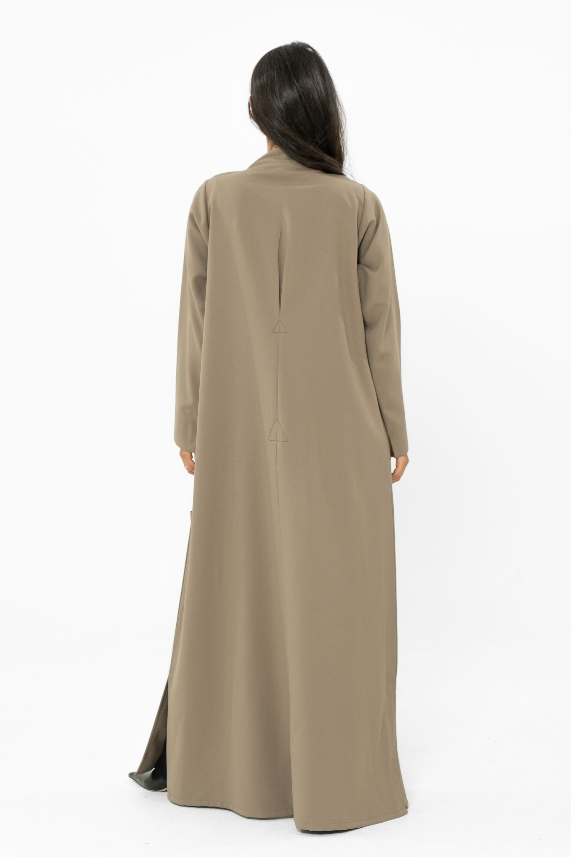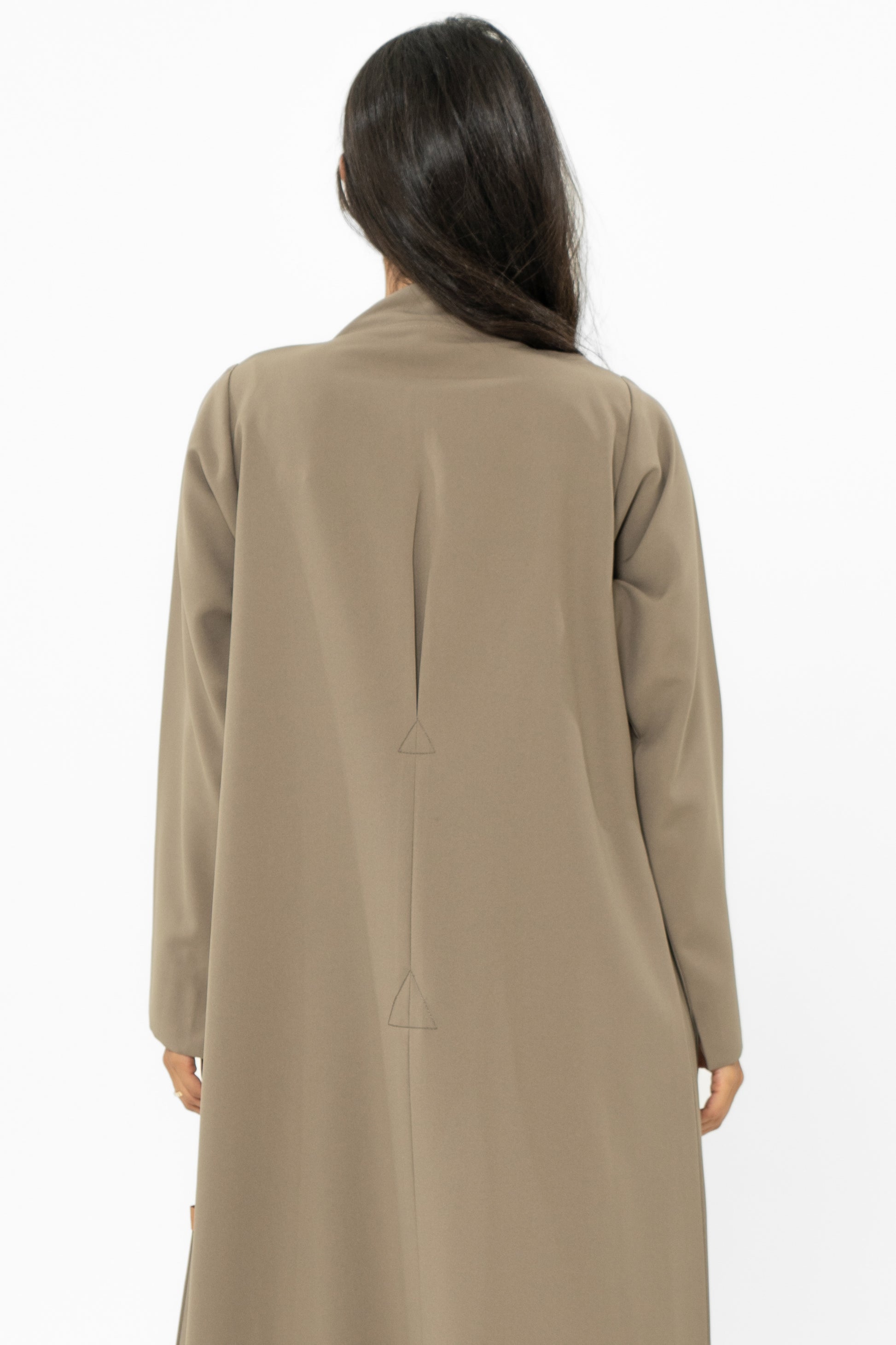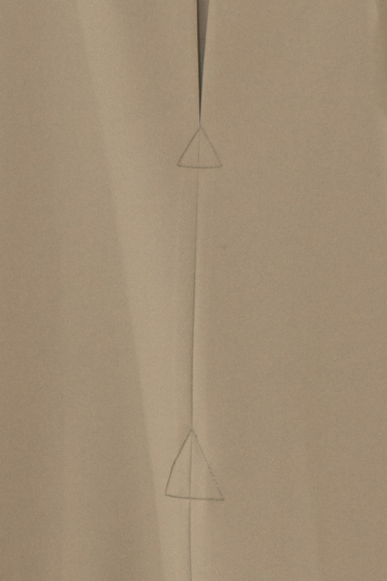 Crafted from luxurious crepe, the Verse outerwear is a stunning fusion of contemporary design and timeless elegance. With its sleek straight cut and high neckline, it offers a sophisticated silhouette, while the inverted pleats at the back form two bold triangles, adding a touch of geometric flair.