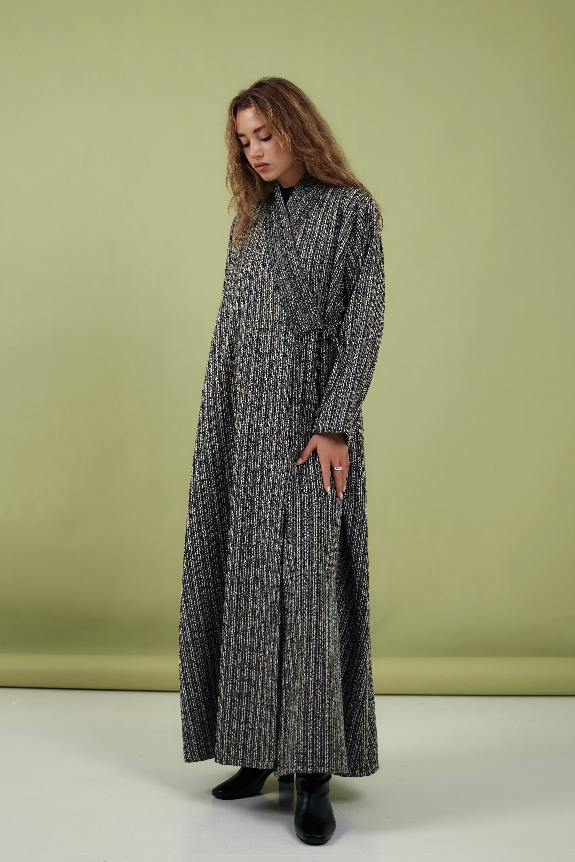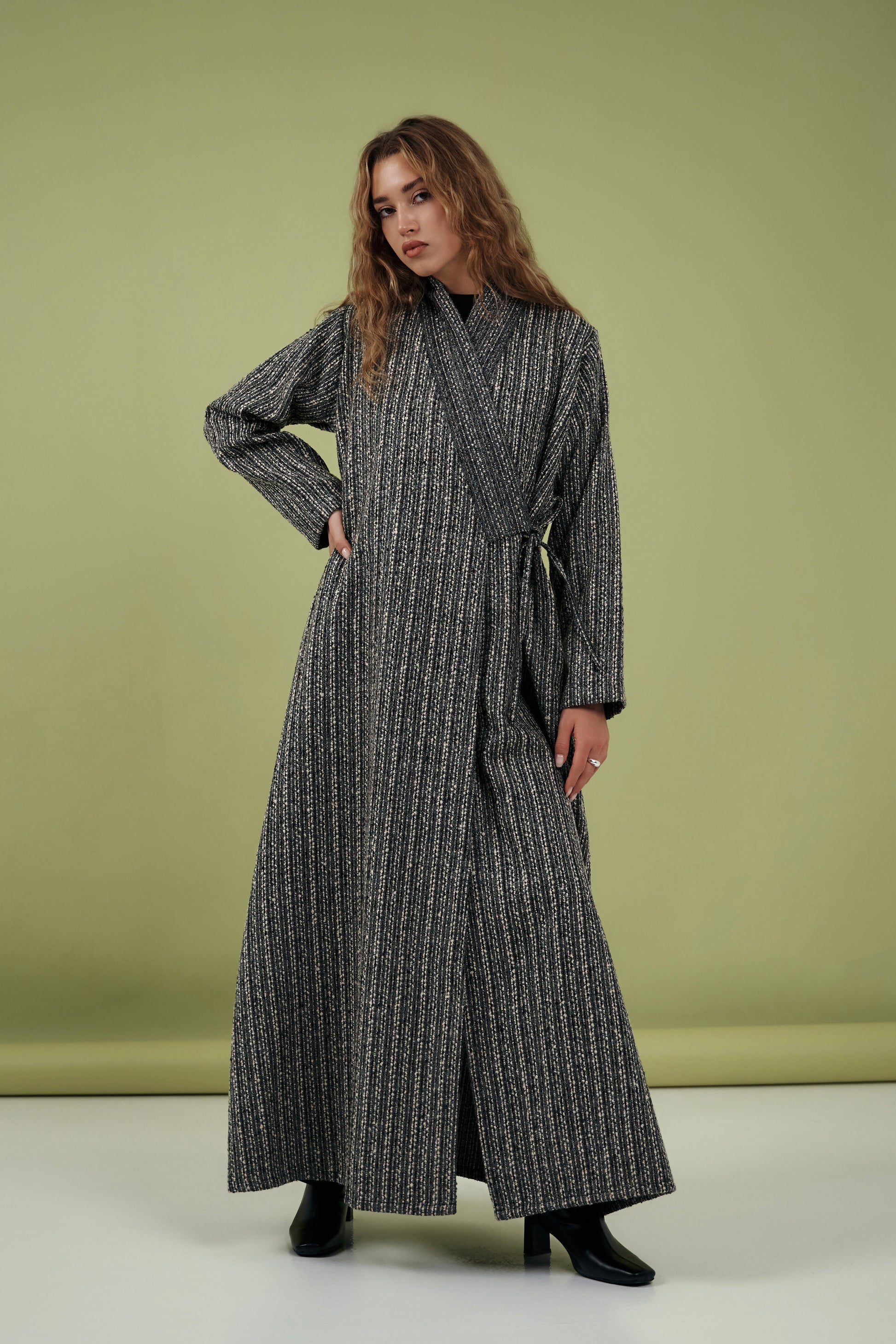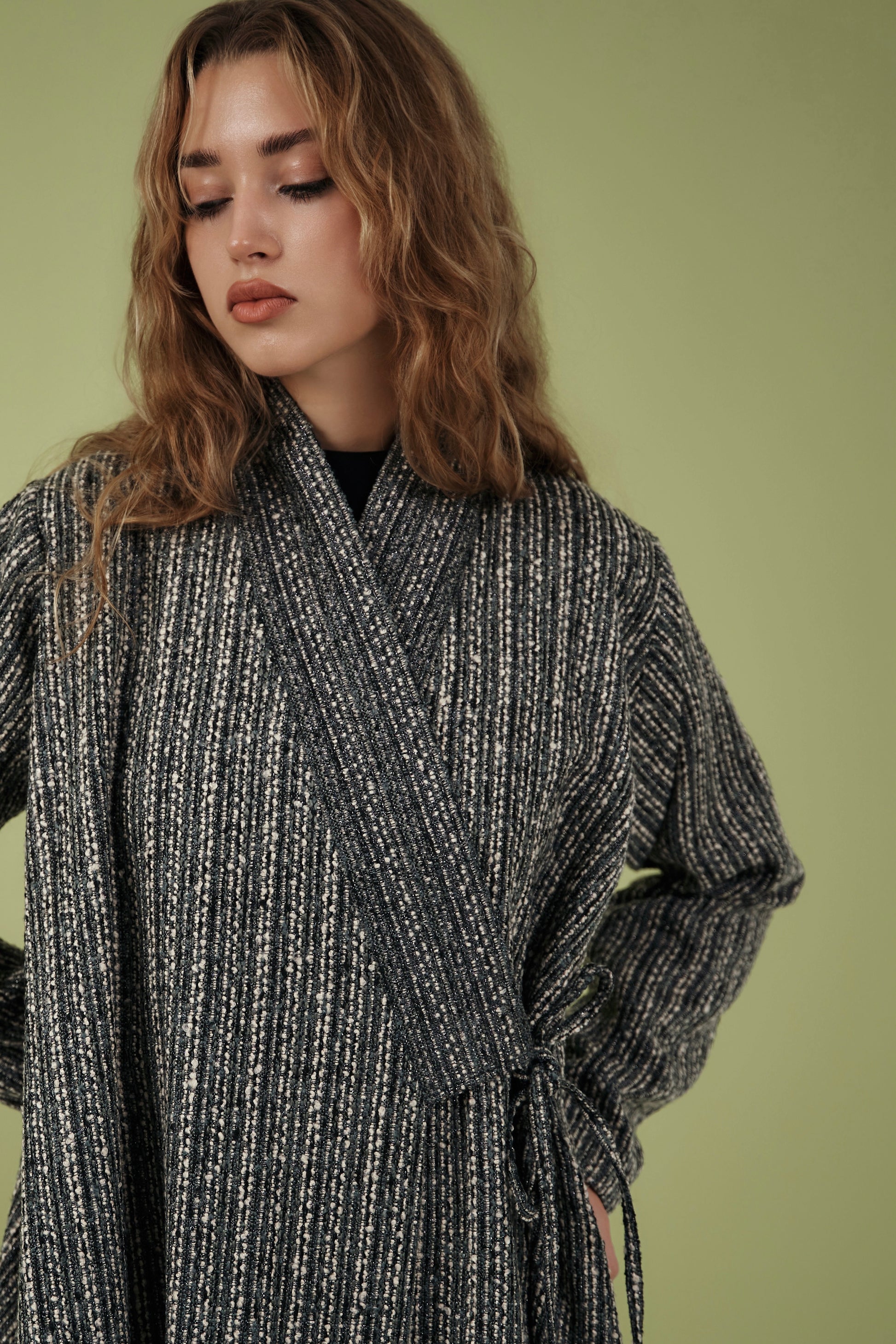 Crafted from opulent Tweed with a delicate shimmer, designed in a kimono style. Featuring adjustable ties for a custom fit, and a single back vent for an extra touch of Sophistication.