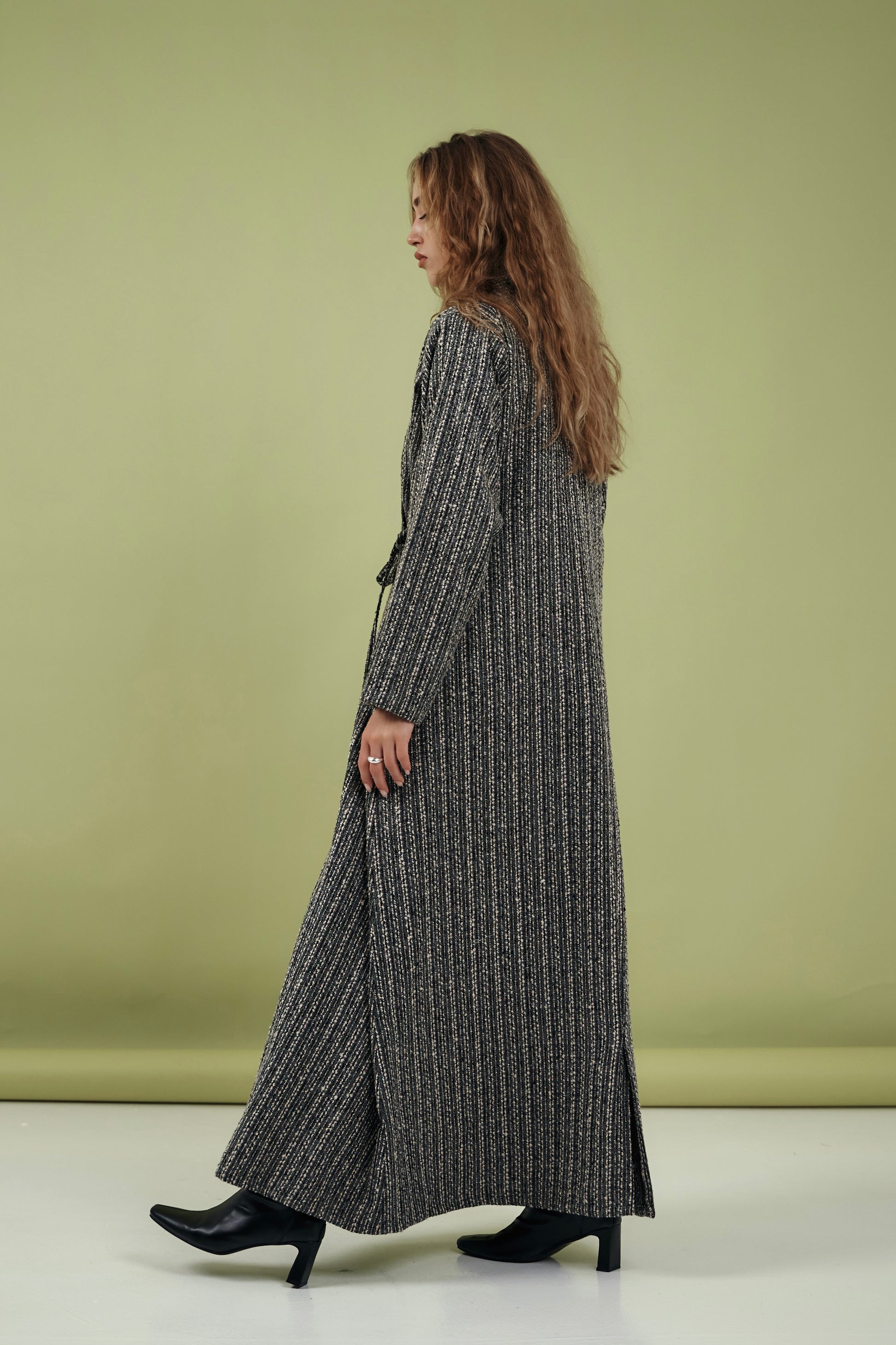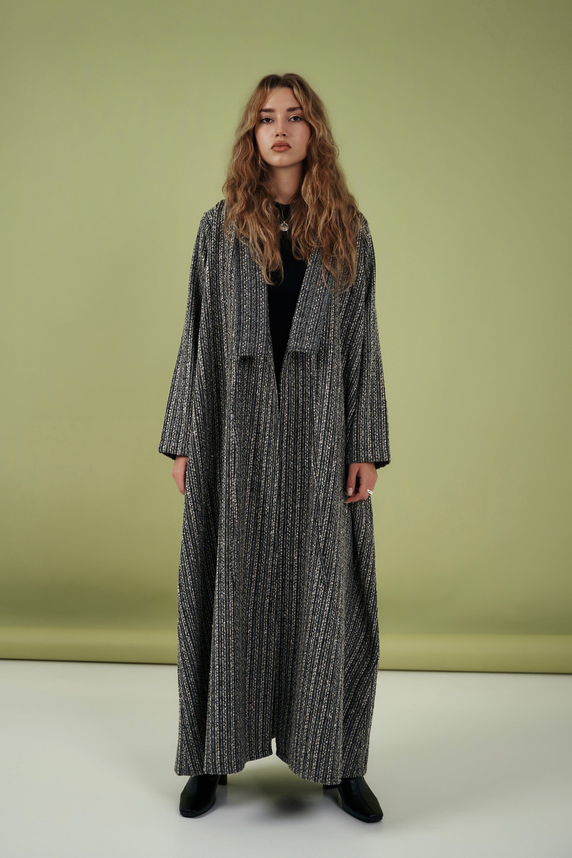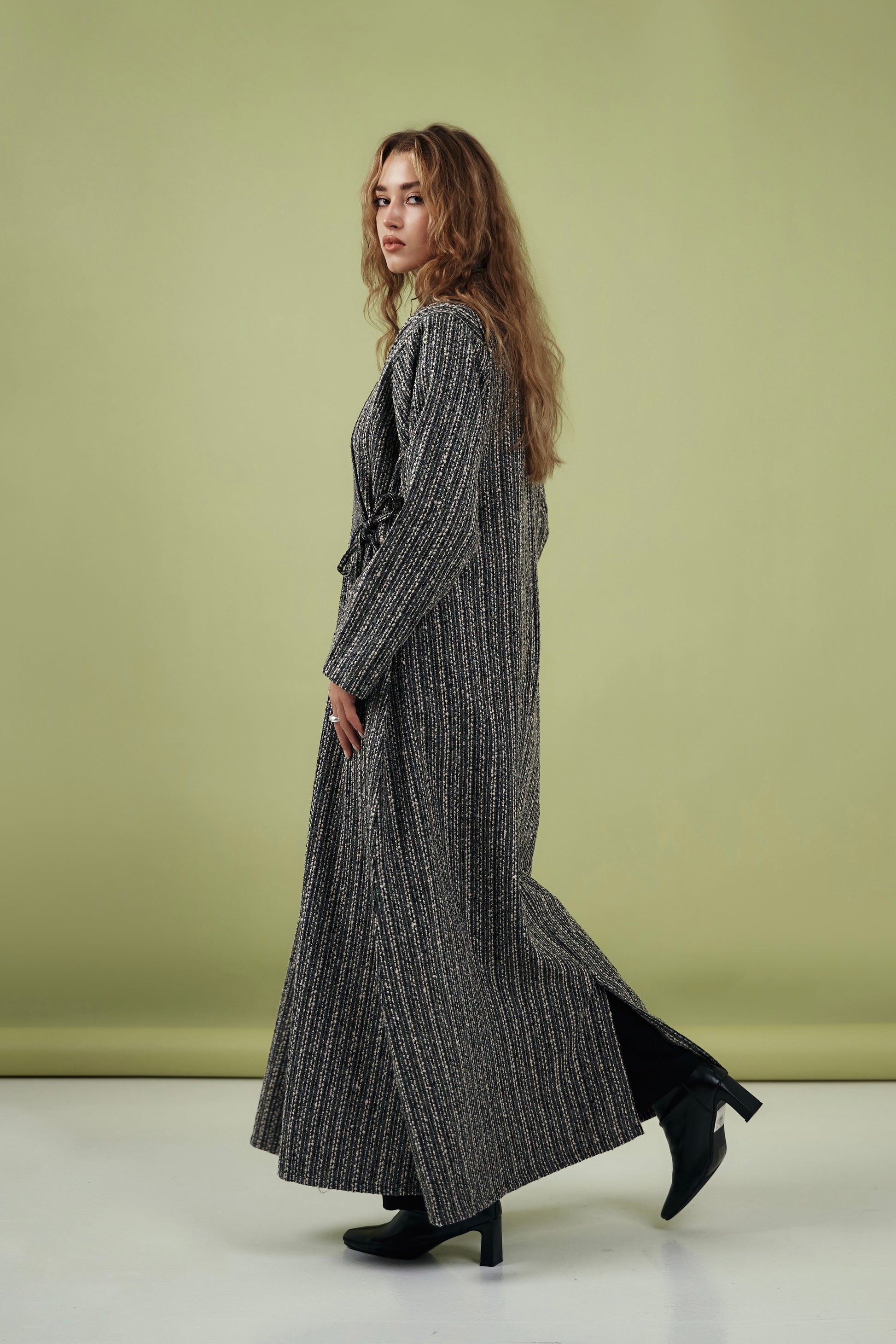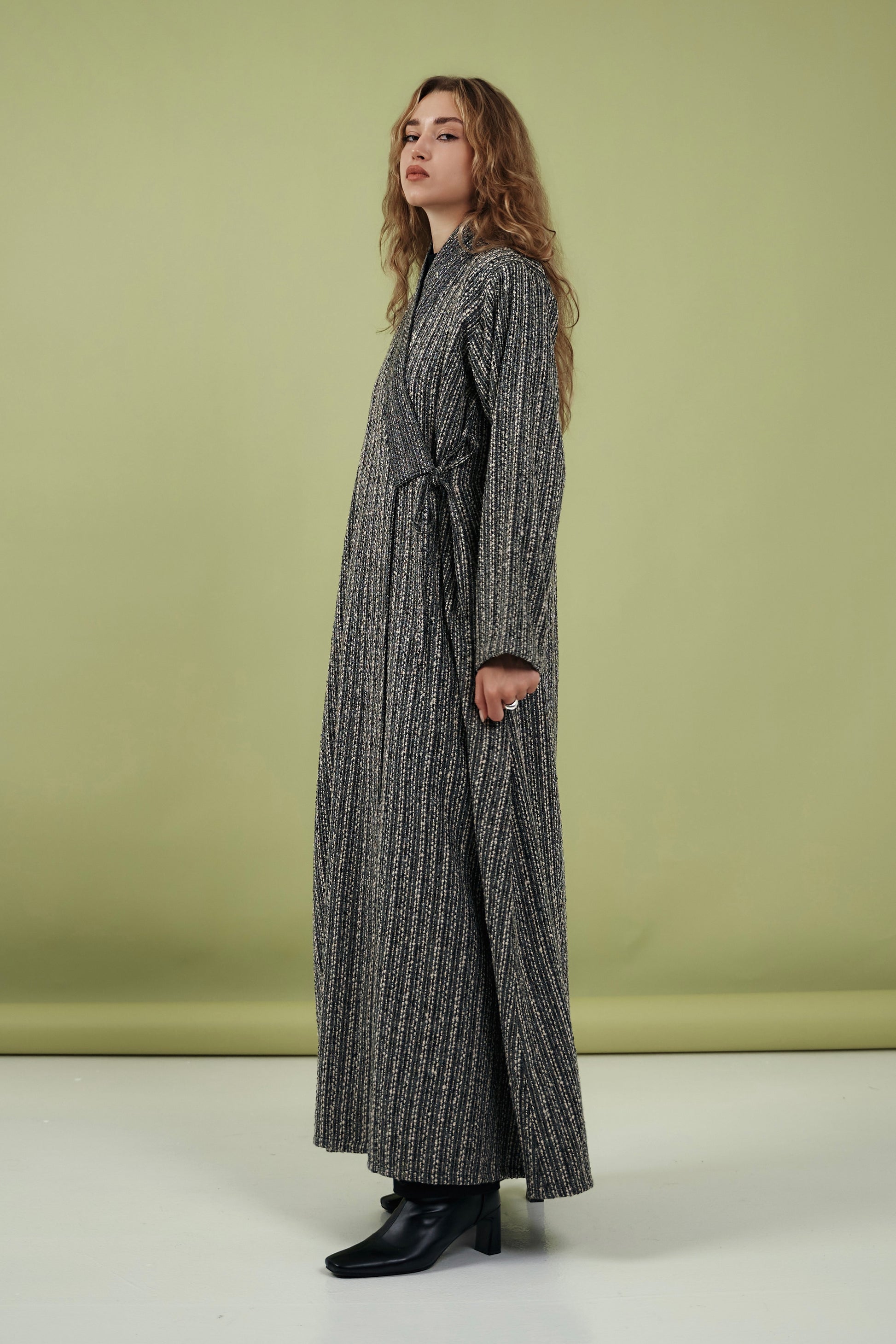 Crafted from opulent Tweed with a delicate shimmer, designed in a kimono style. Featuring adjustable ties for a custom fit, and a single back vent for an extra touch of Sophistication.
